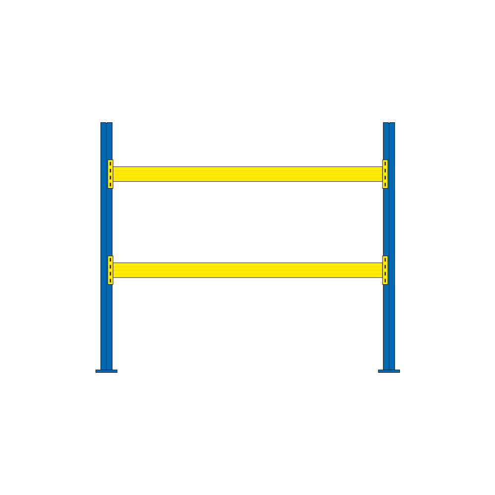 Praktisches Großfachregal für Paletten, Gitterboxen und Behälter. Mit diesem Regalsystem steht Ihnen ein leistungsstarkes und praxisbewährtes Produkt zur Auswahl. Die Stützenprofile sind aus hochfestem Stahl geformt und erhalten durch ihre spezielle Profilierung eine sehr hohe Steifigkeit. Sie werden durch Diagonal- und Horizontalstreben zu einem Fachwerkrahmen verschraubt. Die Anlieferung bei Ihnen erfolgt zerlegt. Die steckbaren Tragbalken gewährleisten eine einfache und schnelle Montage und kurze Umbauzeiten. Sie sind auch nachträglich im Raster von 50 mm in der Höhe verstellbar. Das praxisgerechte Zubehör ermöglicht den betrieblichen Erfordernissen leicht anpassbare Lösungen. Dieses Regalsystem ist mit allen Stapelgeräten bedienbar. Regalstützen blau RAL 5010, Fachwerk verzinkt, Tragbalken goldgelb RAL 1004 kunststoffbeschichtet.