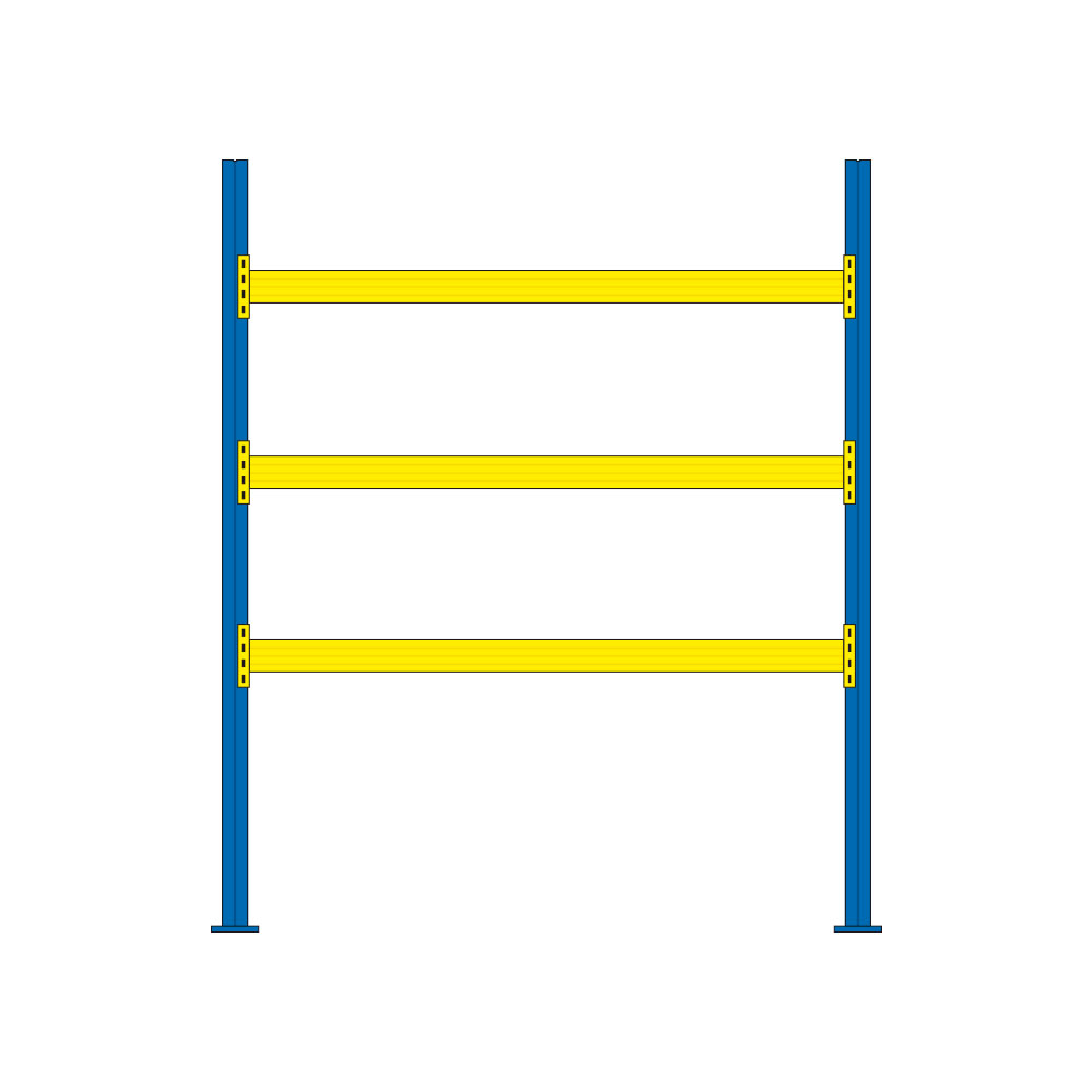 Praktisches Großfachregal für Paletten, Gitterboxen und Behälter. Mit diesem Regalsystem steht Ihnen ein leistungsstarkes und praxisbewährtes Produkt zur Auswahl. Die Stützenprofile sind aus hochfestem Stahl geformt und erhalten durch ihre spezielle Profilierung eine sehr hohe Steifigkeit. Sie werden durch Diagonal- und Horizontalstreben zu einem Fachwerkrahmen verschraubt. Die Anlieferung bei Ihnen erfolgt zerlegt. Die steckbaren Tragbalken gewährleisten eine einfache und schnelle Montage und kurze Umbauzeiten. Sie sind auch nachträglich im Raster von 50 mm in der Höhe verstellbar. Das praxisgerechte Zubehör ermöglicht den betrieblichen Erfordernissen leicht anpassbare Lösungen. Dieses Regalsystem ist mit allen Stapelgeräten bedienbar. Regalstützen blau RAL 5010, Fachwerk verzinkt, Tragbalken goldgelb RAL 1004 kunststoffbeschichtet.