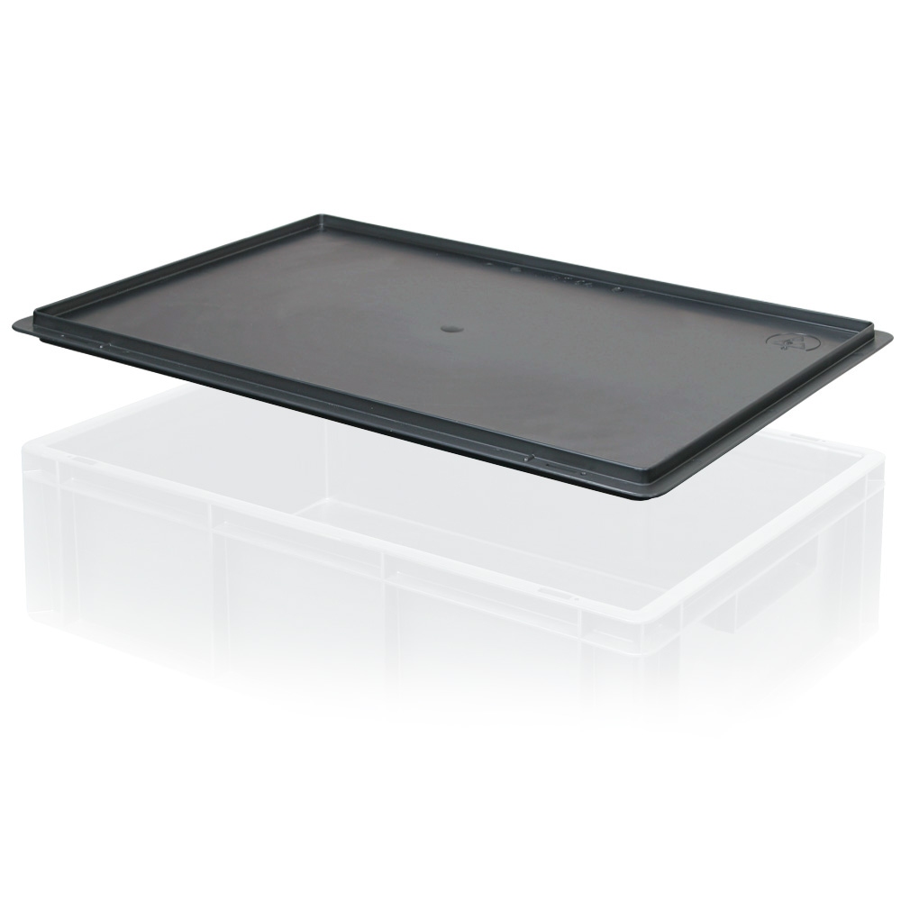 Auflagedeckel für Eurobehälter, LxB 600x400 mm. Farbe schwarz. Elektrisch leitfähig. Material PP.