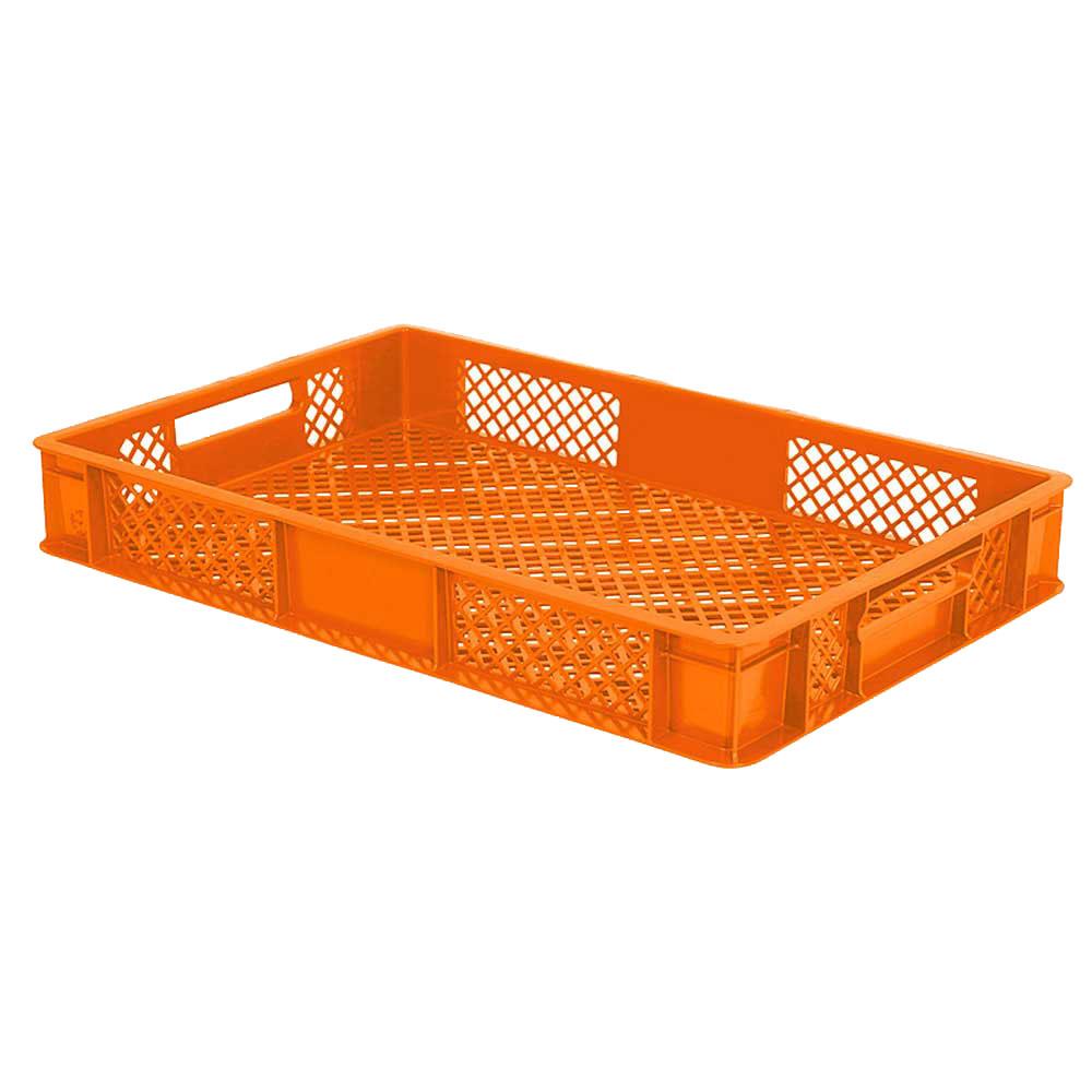 Durchbrochener Eurobehälter mit 2 Durchfassgriffen, LxBxH 600x400x90 mm, 15 Liter, orange