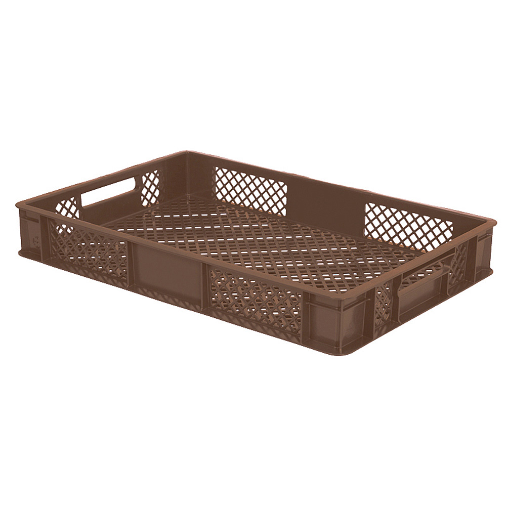 Durchbrochener Eurobehälter mit 2 Durchfassgriffen, LxBxH 600x400x90 mm, 15 Liter, braun