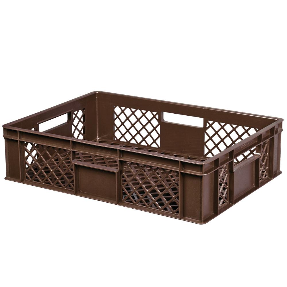 "Durchbrochener Eurobehälter mit 4 Durchfassgriffen, LxBxH 600x400x150 mm, 27 Liter, braun"