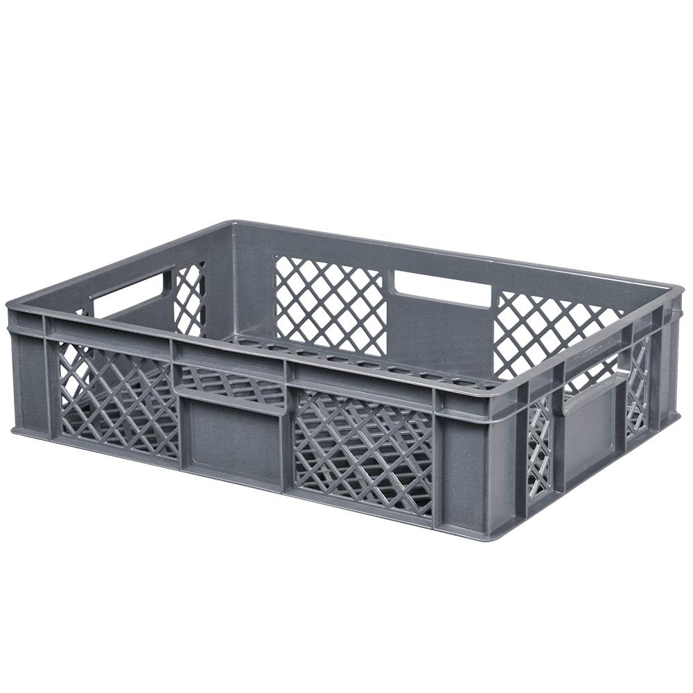 "Durchbrochener Eurobehälter mit 4 Durchfassgriffen, LxBxH 600x400x150 mm, 27 Liter, grau"