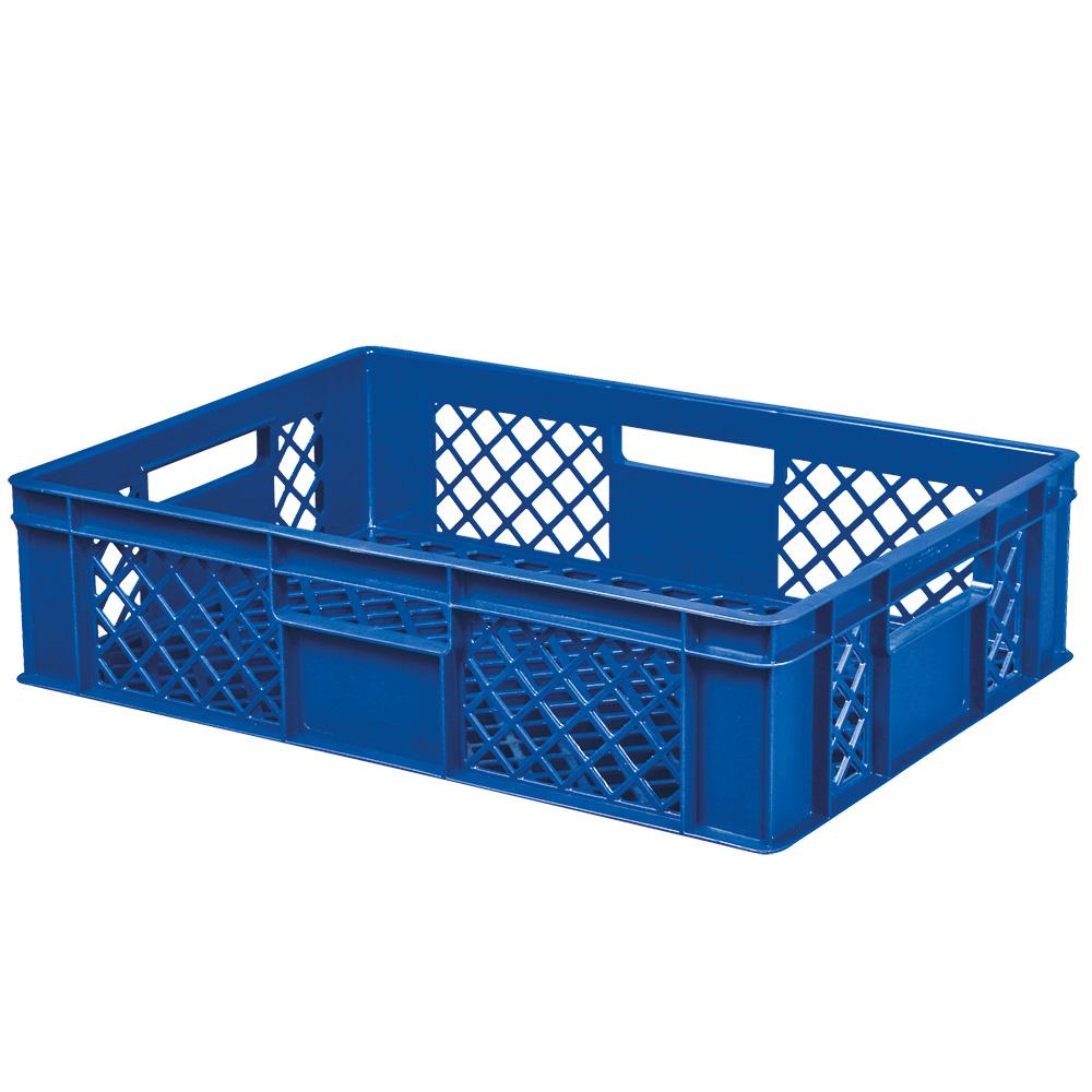 "Durchbrochener Eurobehälter mit 4 Durchfassgriffen, LxBxH 600x400x150 mm, 27 Liter, blau"
