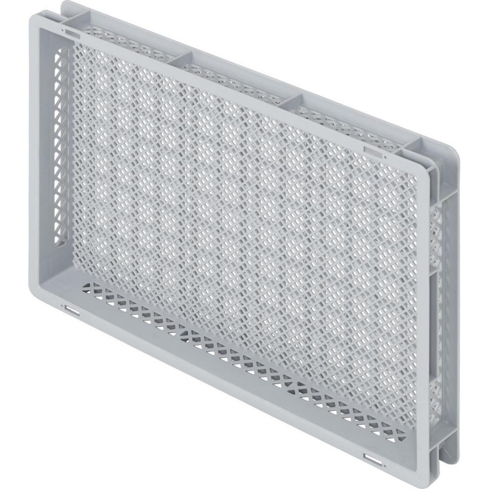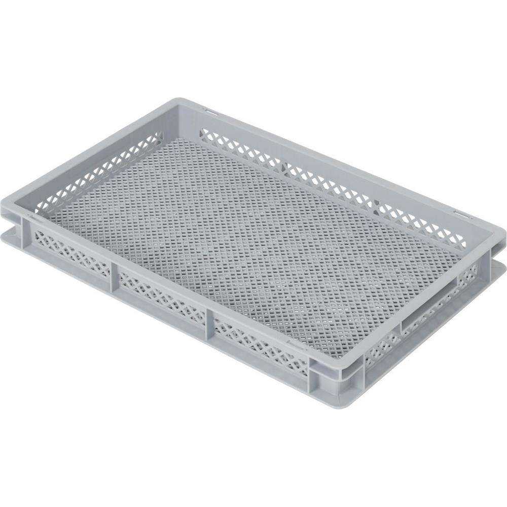 Durchbrochener Eurobehälter mit 2 Griffleisten, LxBxH 600x400x75 mm, 13 Liter, grau