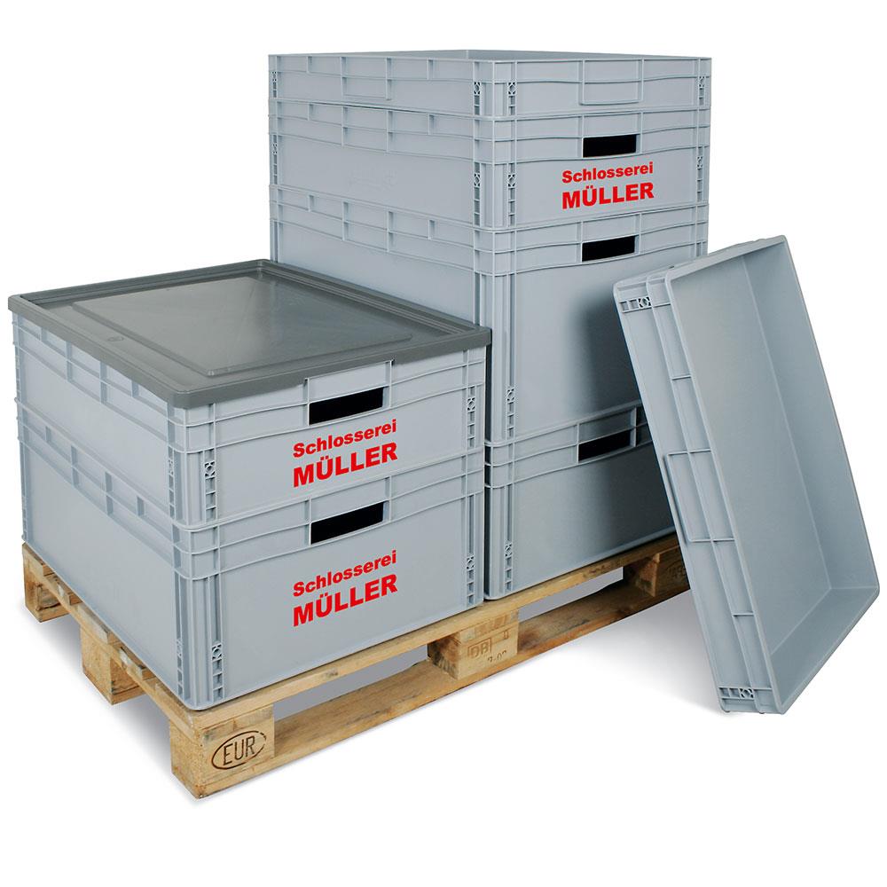 Besonders stabil durch aufwendige Außenverrippung. Innenwände glatt für leichte Reinigung. Spülmaschinenfest. Resistent gegen die meisten Säuren und Laugen. Dieser Behälter läuft ruhig und sicher auf Rollenbahnen.