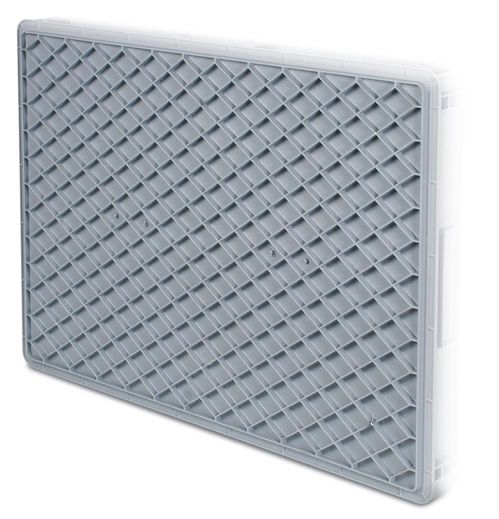 Besonders stabil durch aufwendige Außenverrippung. Innenwände glatt für leichte Reinigung. Spülmaschinenfest. Resistent gegen die meisten Säuren und Laugen. Dieser Behälter läuft ruhig und sicher auf Rollenbahnen.