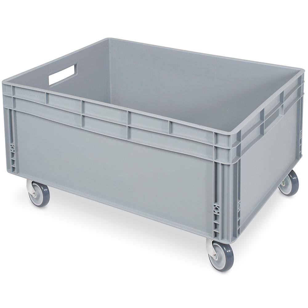 Eurobehälter mit 4 Lenkrollen, LxB 800x600 mm, Gesamthöhe 445 mm, 130 Liter, grau