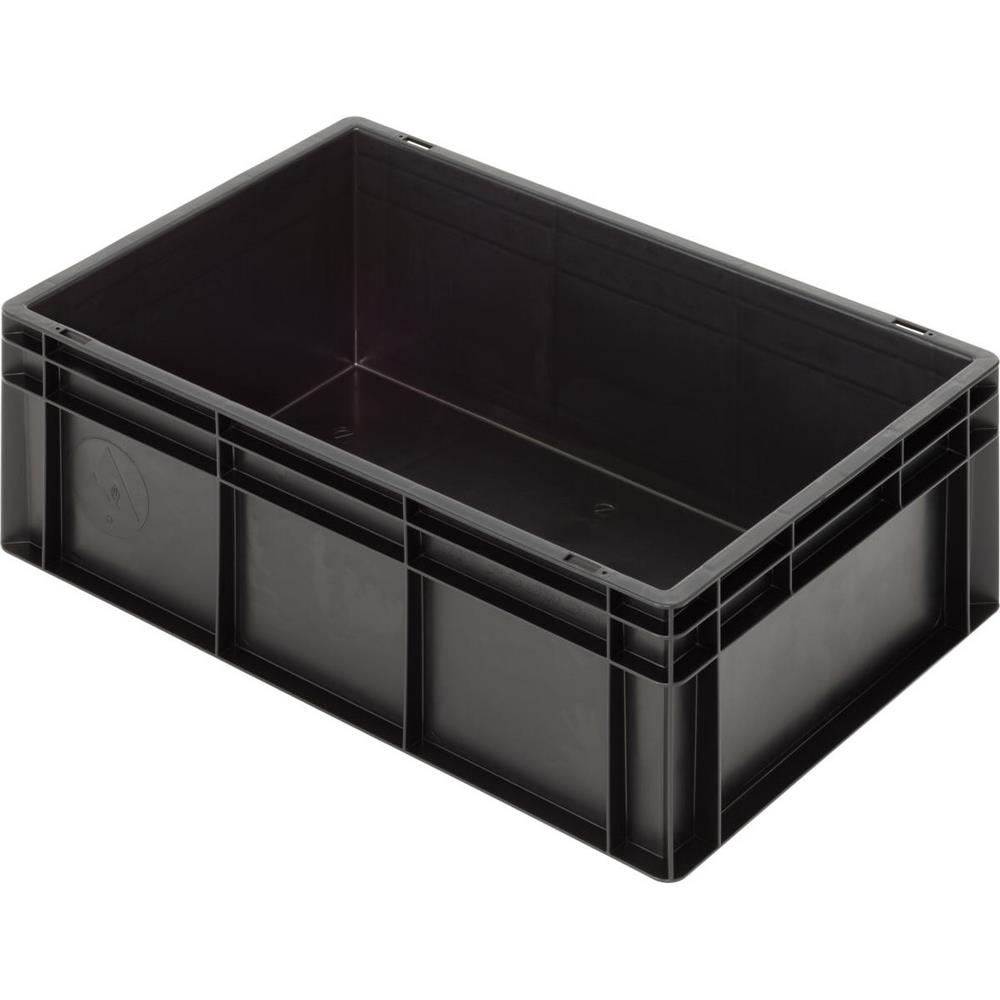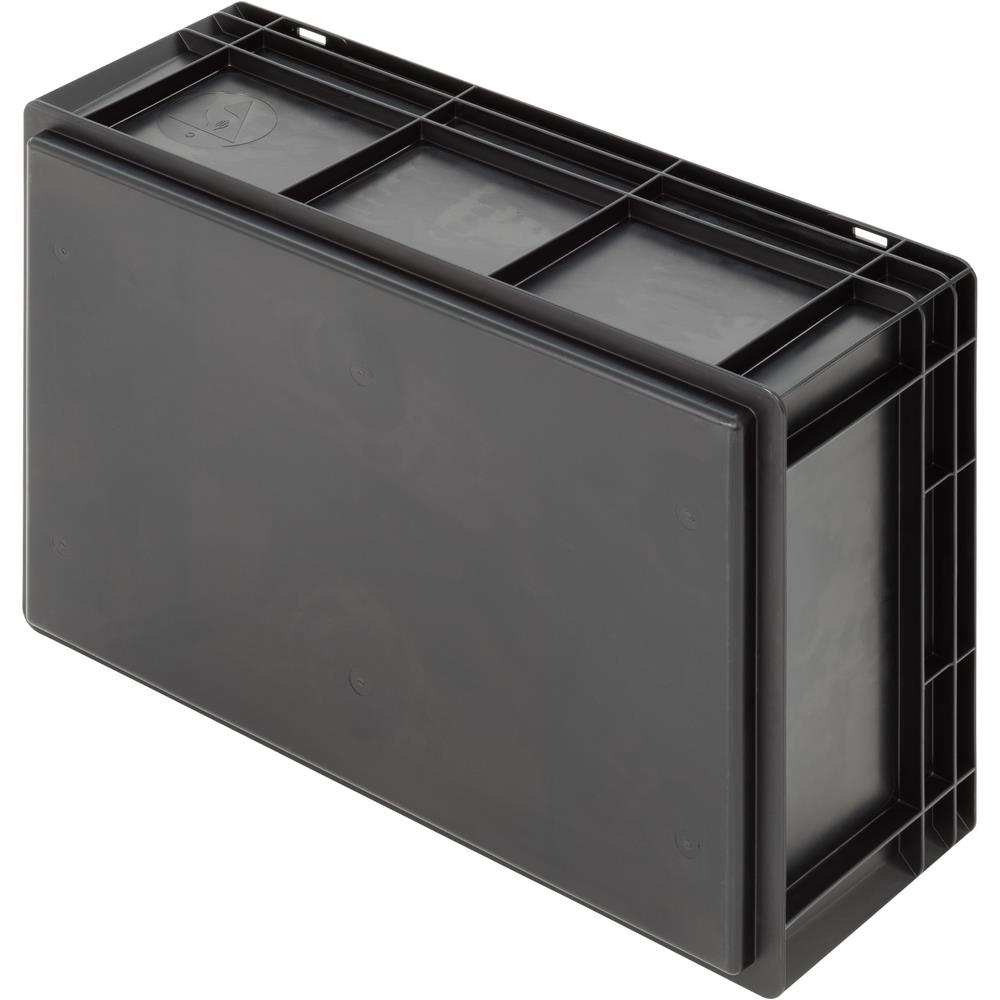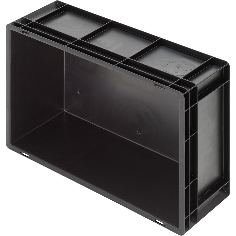 "Leitfähiger Stapelbehälter, 2 Griffleisten, LxBxH 600x400x220 mm, 43 Liter, schwarz"