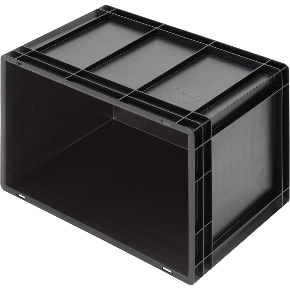 "Leitfähiger Stapelbehälter, 2 Griffleisten, LxBxH 600x400x420 mm, 80 Liter, schwarz"