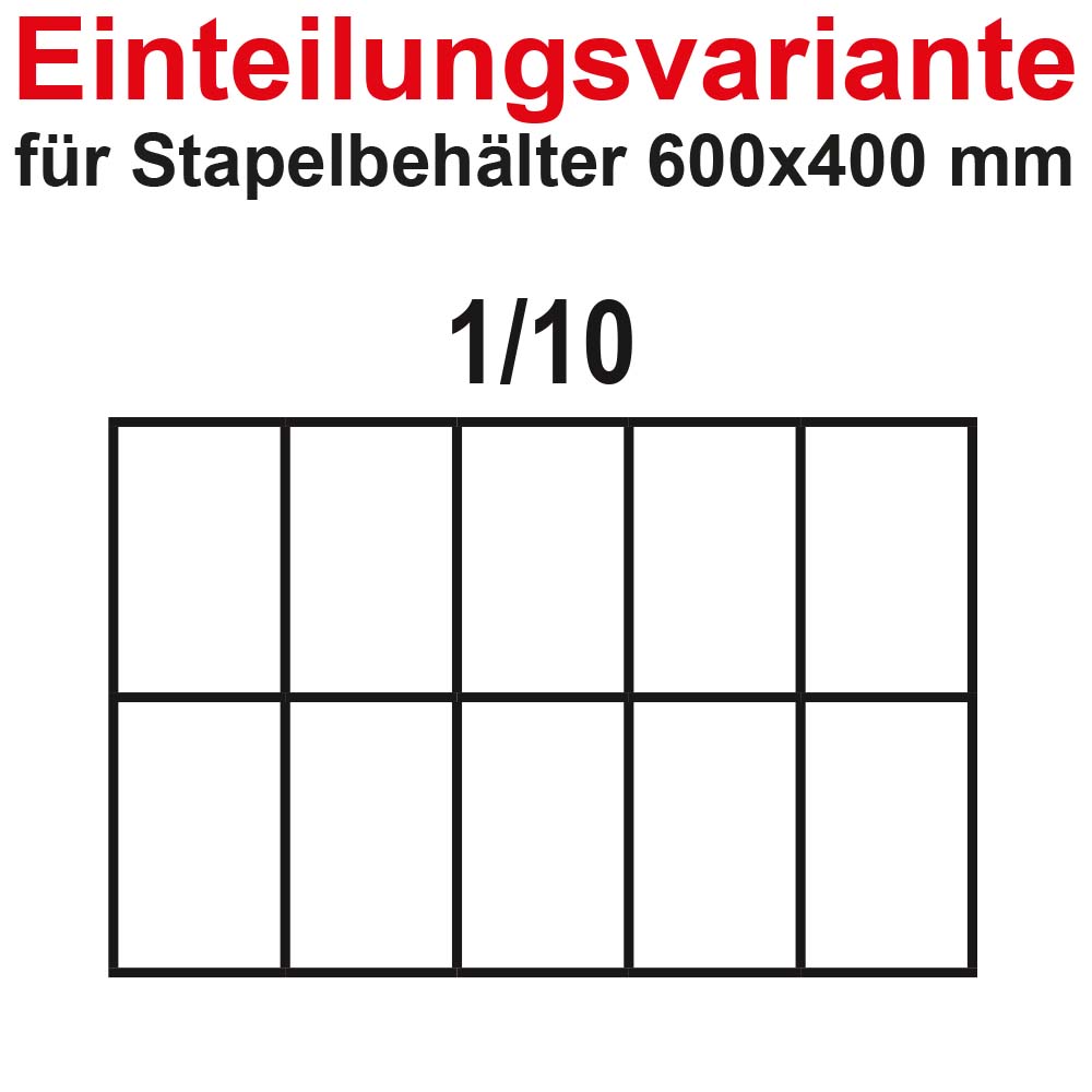 Einsatzkasten für Stapelbehälter 600x400 mm, LxBxH 179x112x55 mm, Farbe grau