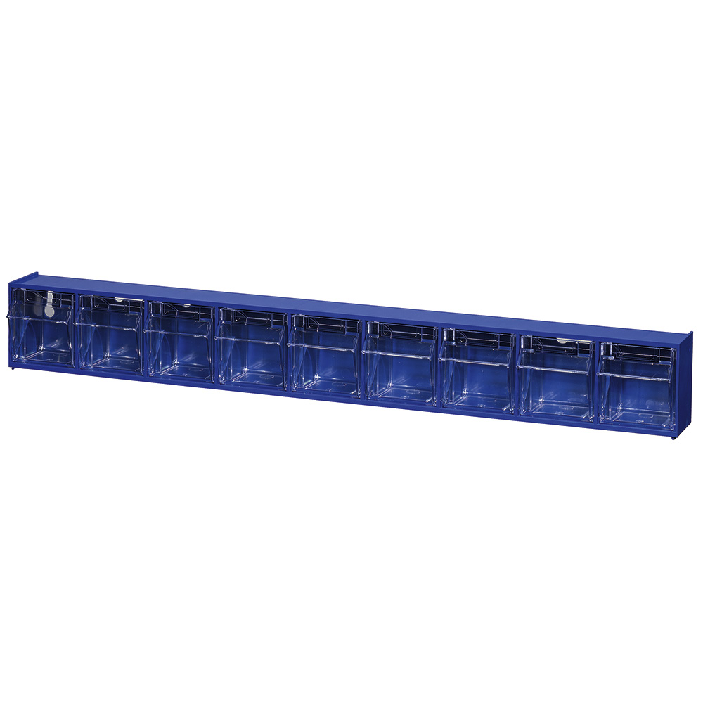 Kleinteilemagazin "Blue" mit 9 Klarsichtboxen, Set 1, BxHxT 600x77x65 mm, Behälter je BxTxH 48x46x44 mm