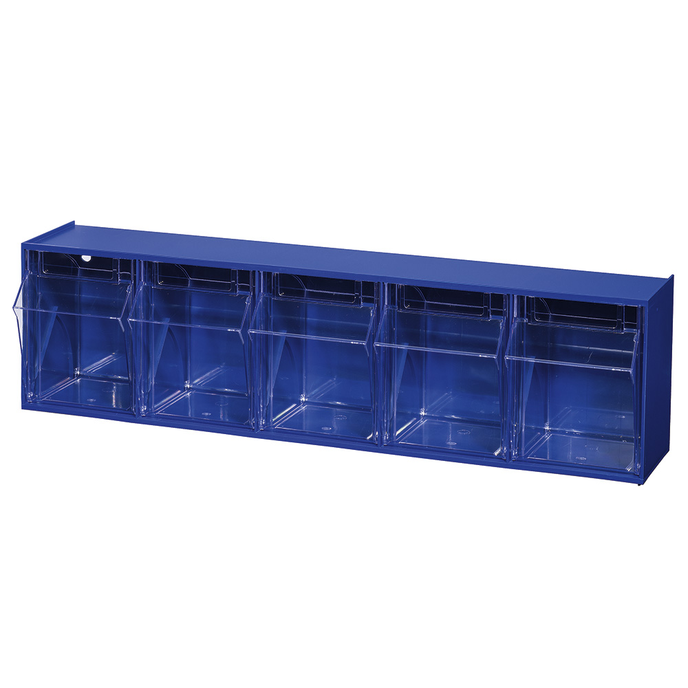 Kleinteilemagazin "Blue" mit 5 Klarsichtboxen, Set 3, BxHxT 600x165x135 mm, Behälter je BxTxH 99x107x97 mm