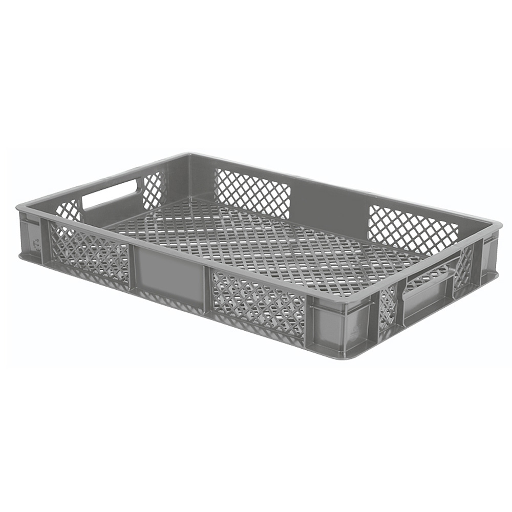 Die perforierten Kisten sind ideal für Lebensmittelwaren wie z. B. in Bäckereien und Backindustrie. Der stapelbare Korb wird aus hochwertigem, lebensmittelechtem Kunststoff hergestellt und kann somit auch für Transporte von unverpackten Lebensmitteln verwendet werden. Boden und Wände der lebensmittelechten Bäckerkisten sind durchbrochen und ermöglichen so eine optimale Luftzirkulation. Dadurch können auch heiße Backwaren gelagert und transportiert werden, ohne dass sich Kondenswasser bildet.