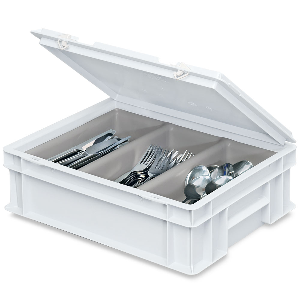 Besteckkasten mit Besteckeinsatz (3 Mulden), LxBxH 400x300x130 mm, weiß
