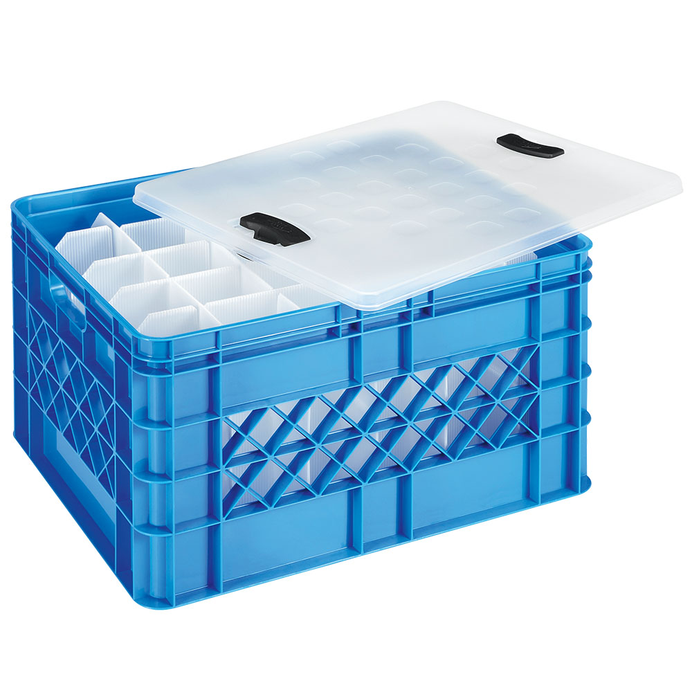 Gläserkasten mit Deckel, 30 Fächer, LxBxH 500x400x260 mm, blau