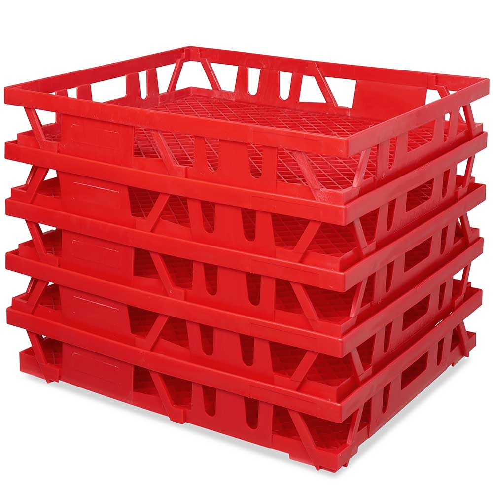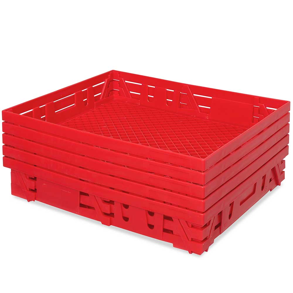 - Platzsparende Lagermöglichkeit und kostengünstiger Rücktransport durch ineinander stellen der leeren Kästen