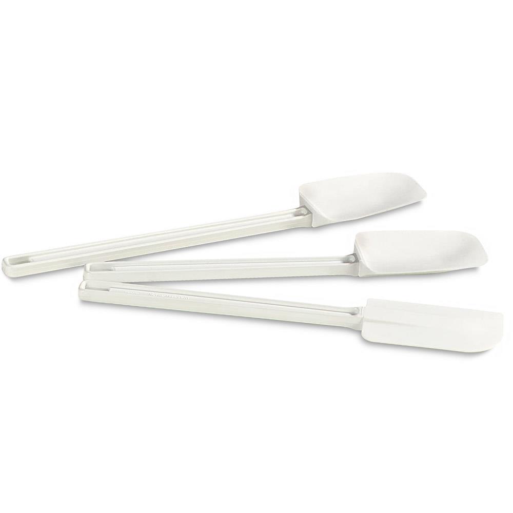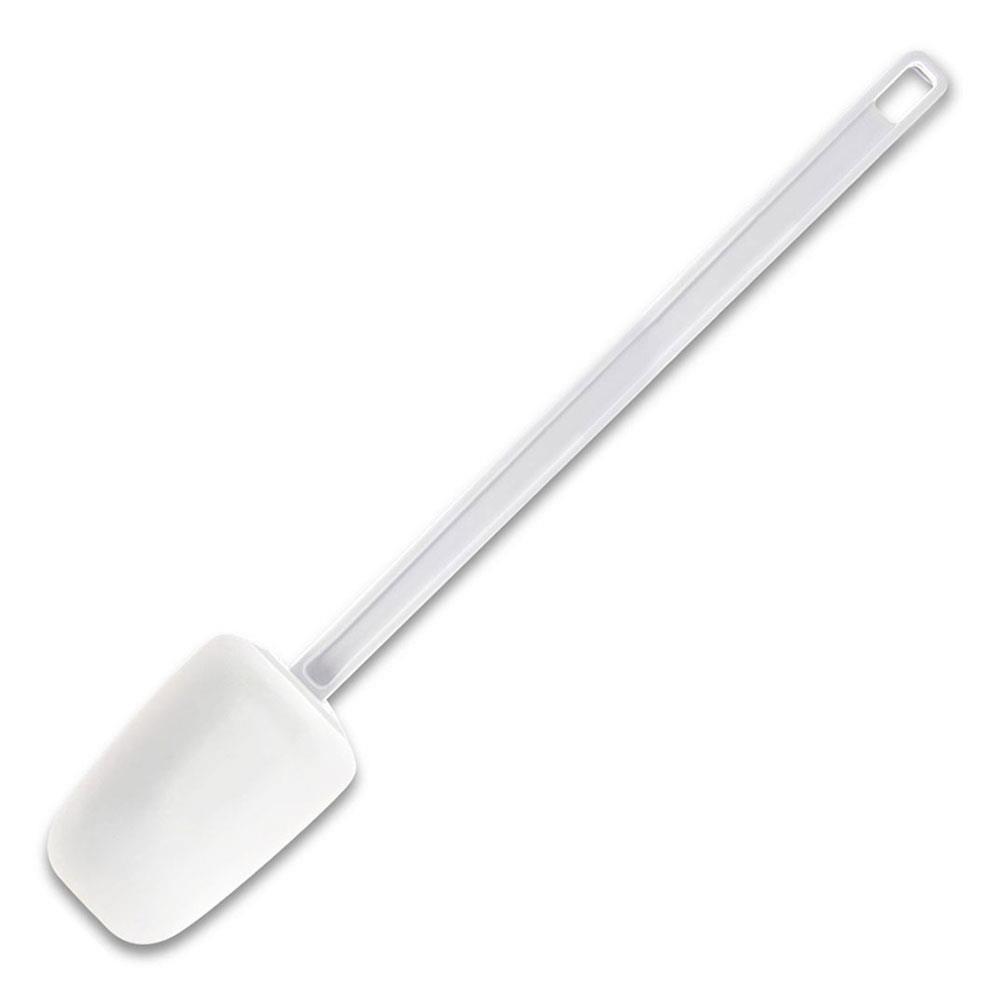 Elastischer, löffelförmiger Teigschaber / Allzweckschaber aus Polyethylen-Kunststoff (PE). Griff und Schaber sind nahtlos zusammengefügt, dadurch keine Schmutz- und Bakterienbildung. Das Material ist fleckenabweisend und spülmaschinenfest. Gesamtlänge 340 mm. Schaber LxB 115x78 mm.