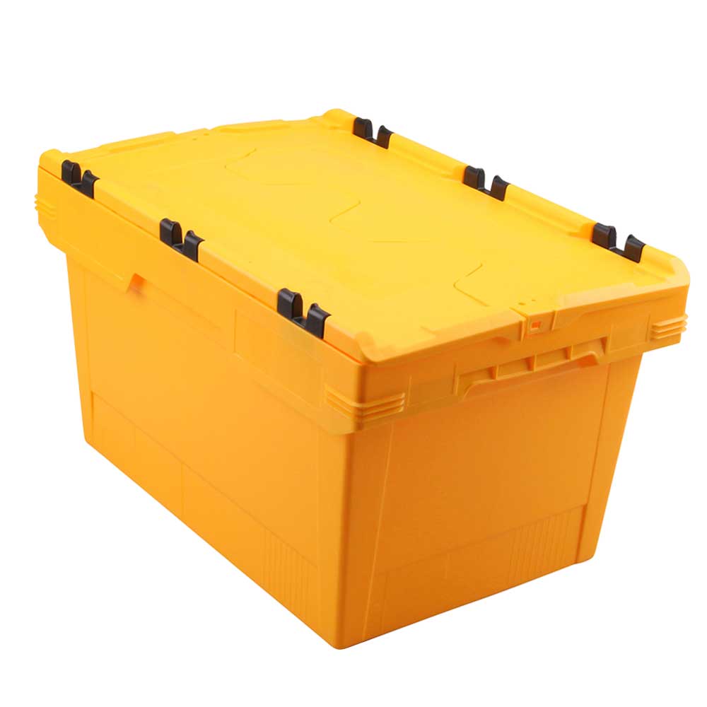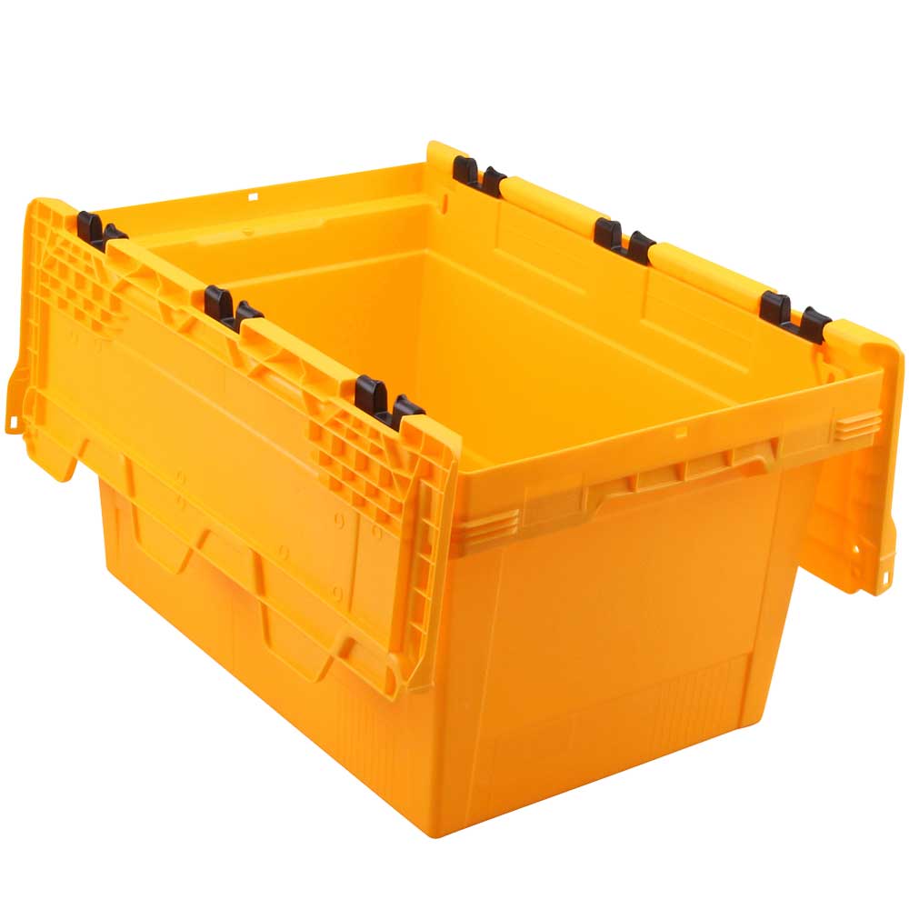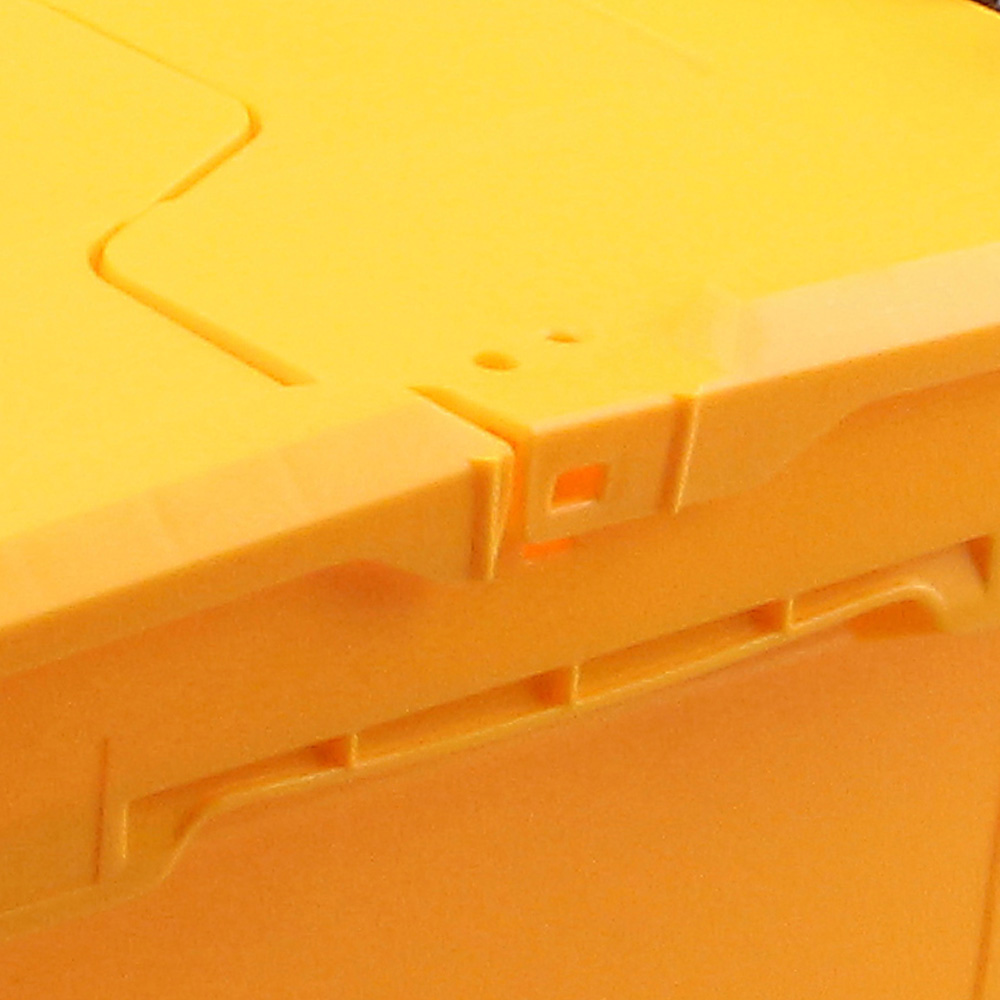 Stabiler Aufbewahrungs- und Transportbehälter mit zweiteiligem, unverlierbarem Klappdeckel mit sicherer Verzahnung. Der Behälter ist stapelbar, im Leerzustand platzsparend ineinander stellbar und bietet viel Platz für wertvolle Ware. Der zweiteilige Klappdeckel ist fest mit dem Behälter verbunden, verplombbar und bietet optimalen Schutz vor Spritzwasser und Staub. Glatte Innenwände ermöglichen eine leichte und gründliche Reinigung. Hergestellt aus 100% Polypropylen-Kunststoff (PP). Temperaturbeständig -20°C bis +80°C.