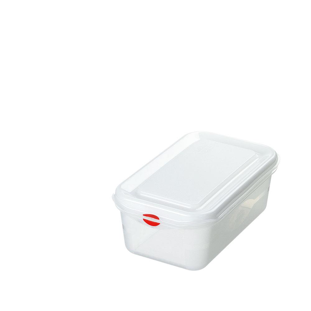 Vielseitige, transparente Aufbewahrungs- und Vorratsbox aus lebensmittelechtem Polypropylen-Kunststoff (PP), Deckel (PE). Der Behälter ist spülmaschinenfest, hygienisch und geruchsneutral.
