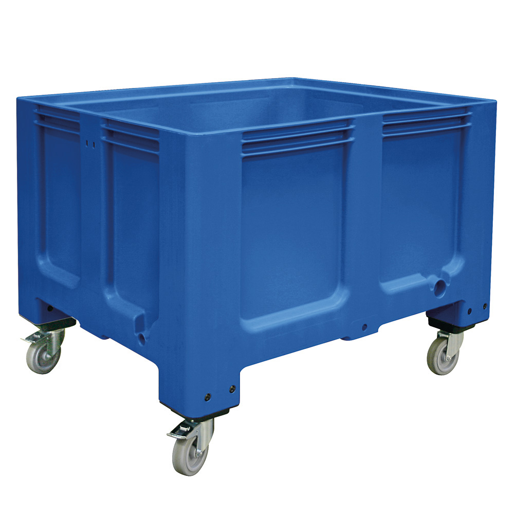 Großbox / Großbehälter mit 4 Lenkrollen und 2 Feststellbremsen, 610 Liter, LxBxH 1200x1000x915 mm, Boden/Wände geschlossen, blau
