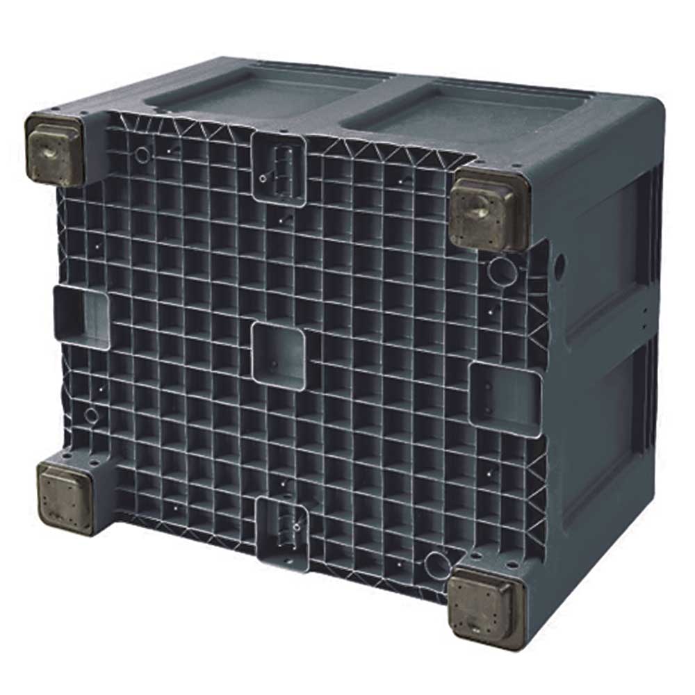 Die Großbox ist resistent gegen die meisten Säuren und Laugen, flüssigkeitsdicht und für den Transport von Batterien geeignet. Im Bodenbereich der Seitenwände sind Ablauflöcher für Flüssigkeiten vorbereitet.