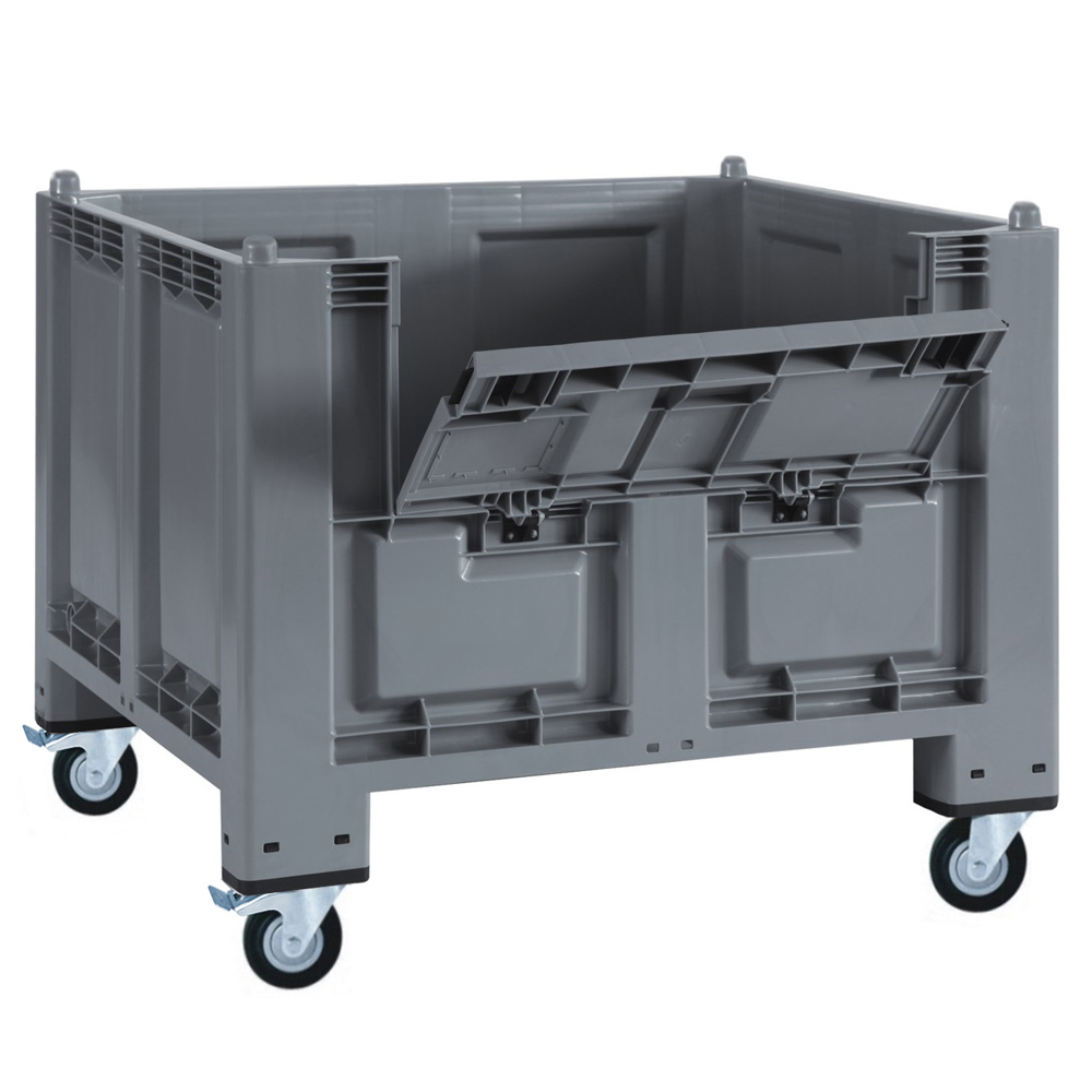 Palettenbox mit Rollen u. Kommissionierklappe, grau, 1200x800x1000 mm, Boden/Wände geschlossen, Tragkraft 250 kg