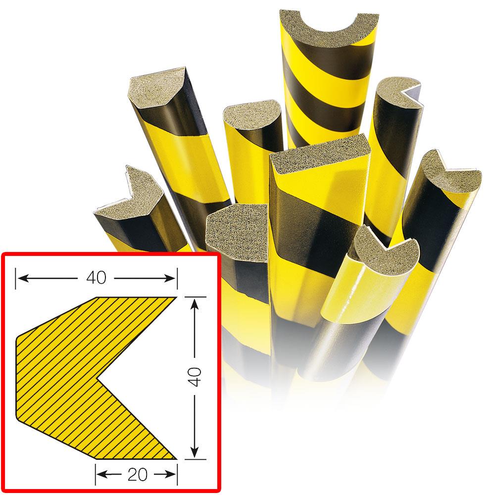 Kantenschutz Trapez, selbstklebend, Profil 40x40 mm, Länge 1000 mm, Farbe gelb/schwarz