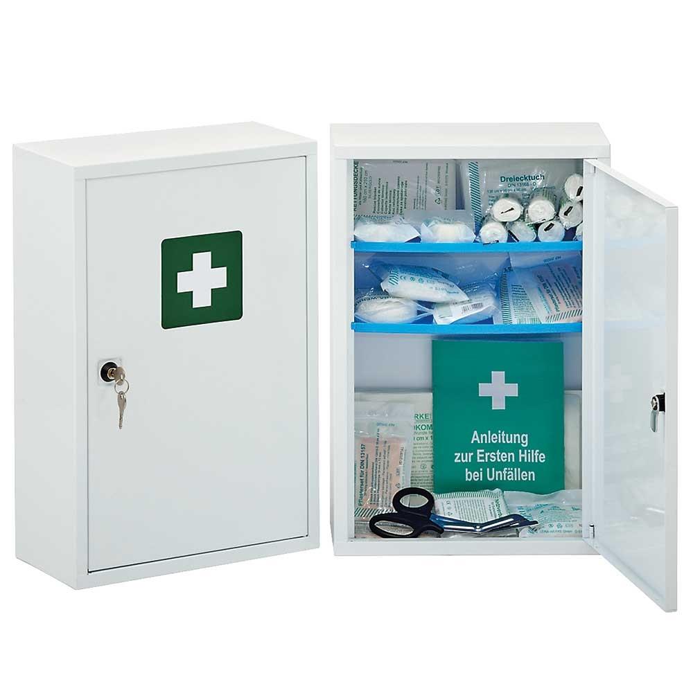 Verbandschrank aus Stahlblech, DIN 13157, BxTxH 300x140x460 mm, perlweiß