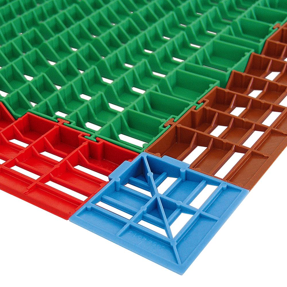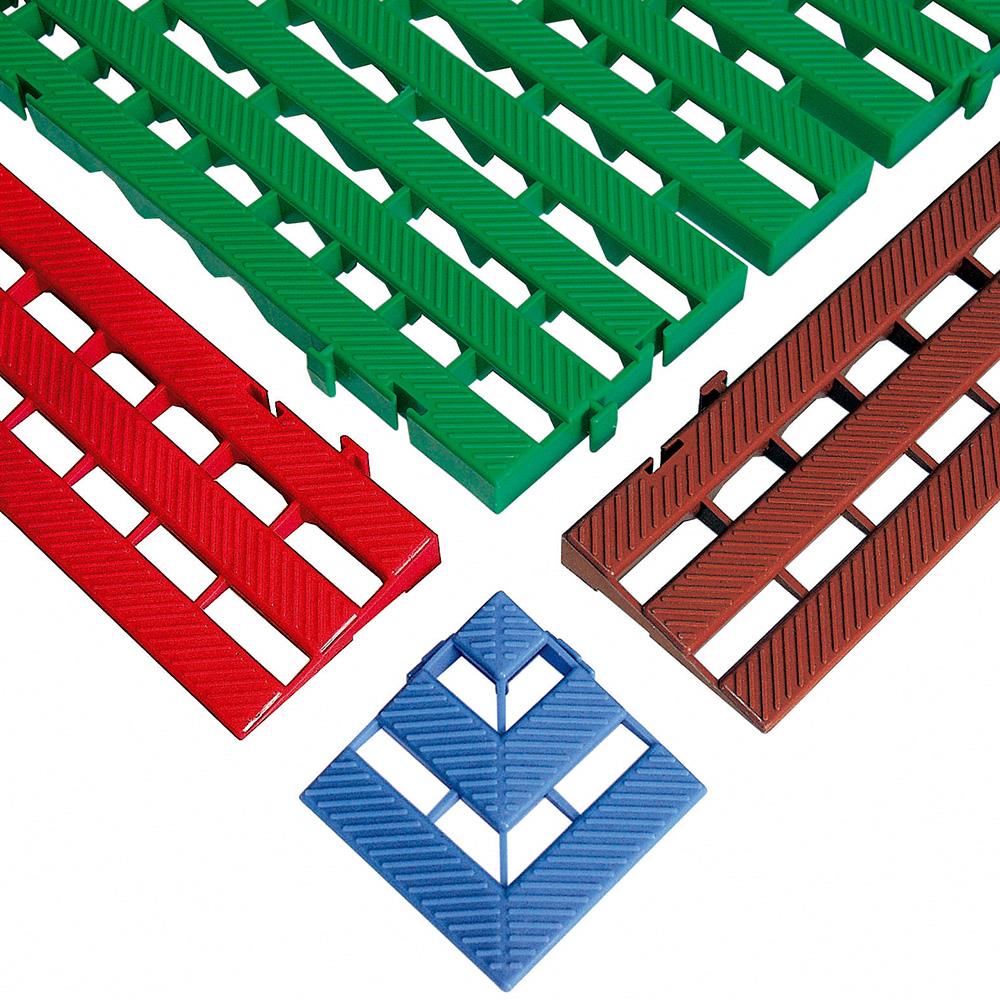Die Kunststoff-Bodenroste sind bestens geeignet für Feuchträume, hinter Theken, in Kühlhäusern, Umkleideräumen, vor Maschinen und Werkbänken. Anti-Rutsch-Noppen auf der Oberfläche mindern das Risiko für Rutschunfälle. Die pflegeleichten und unverwüstlichen Nassraummatten sind aus hochwertigem Polyethylen-Kunststoff (PE-HD) hergestellt. Die Elemente werden durch einfaches Ineinanderstecken verbunden und lassen sich bei Bedarf wieder lösen. Die Kunststoff-Bodenmatten können beliebig zugeschnitten werden und sind leicht zu reinigen, auch in Spülmaschinen und mit dem Dampfstrahler. Die im Spritzverfahren hergestellten Kunststoffroste sind weitgehend chemikalienbeständig und können problemlos mit Transportrollern, Wagen und Hubwagen befahren werden.
