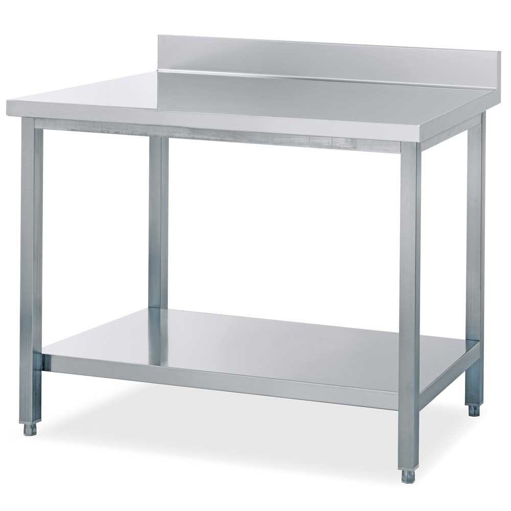 Edelstahl-Arbeitstisch, BxTxH 1000x700x850/950 mm, Arbeitsplatte mit Aufkantung, mit Ablageboden