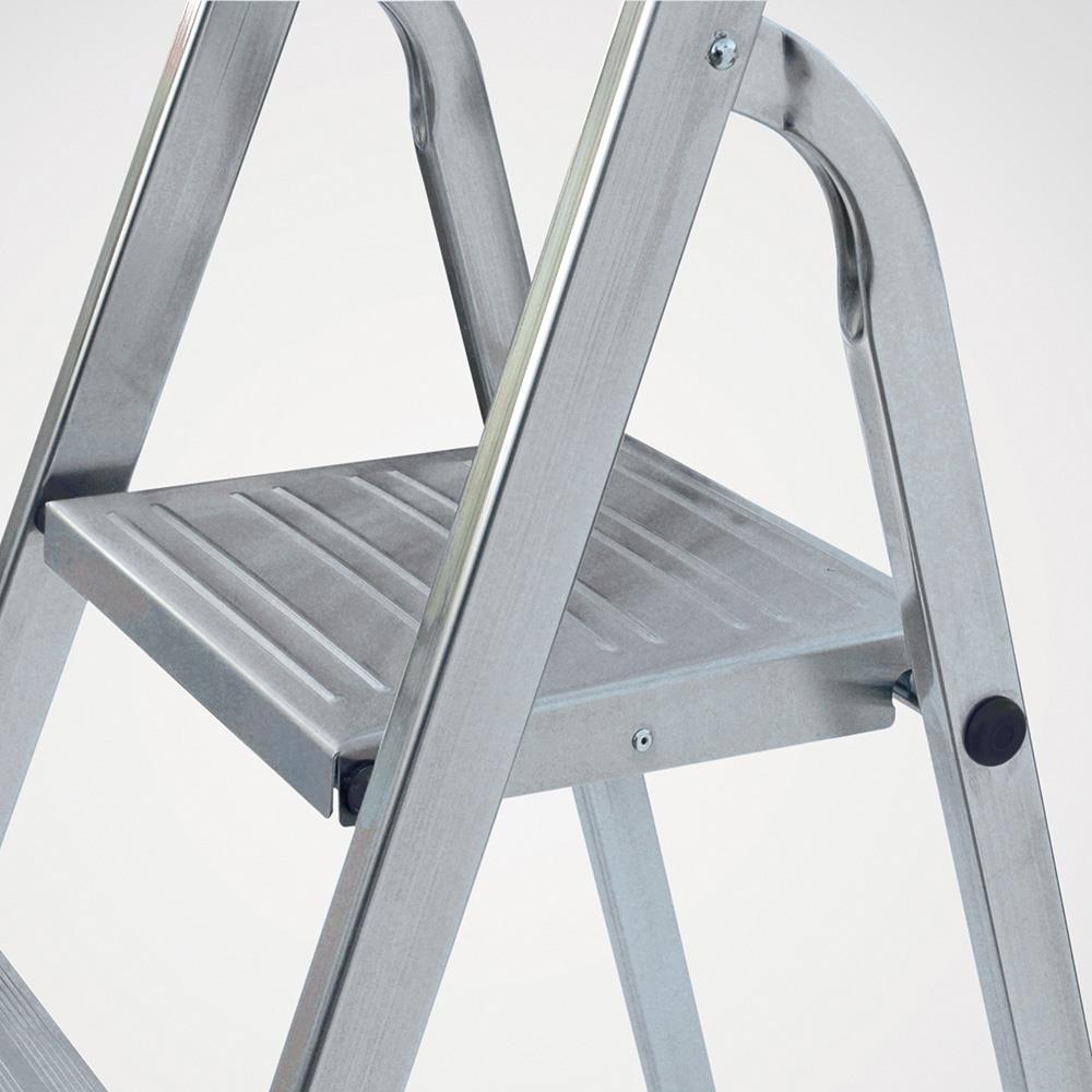 Alu-Stufenleiter mit 4 Stufen, obere Ablage mit Eimerhaken, max. erreichbare Arbeitshöhe 2780 mm