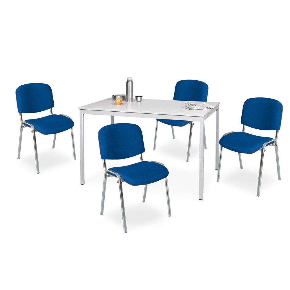 5-teilige Sitzgruppe "Perfekt": 4 Polsterstühle, Bezug blau + 1 Tisch, BxTxH 1200x800x750 mm