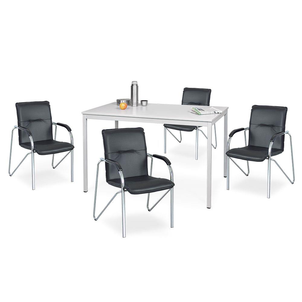 "5-teilige Sitzgruppe: 4 Stapelsessel, Bezug schwarz + 1 Tisch, BxTxH 1200x800x750 mm"
