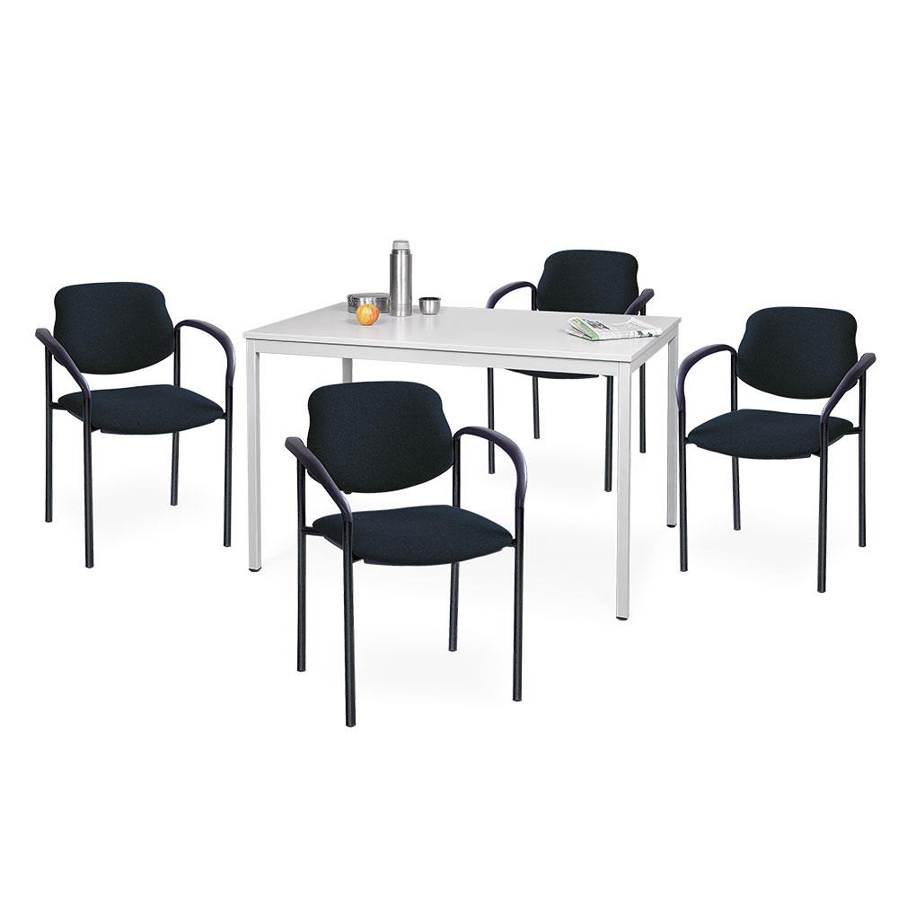 5-teilige Sitzgruppe: 4 Armlehnenstühle, Bezug schwarz + 1 Tisch, BxTxH 1200x800x750 mm