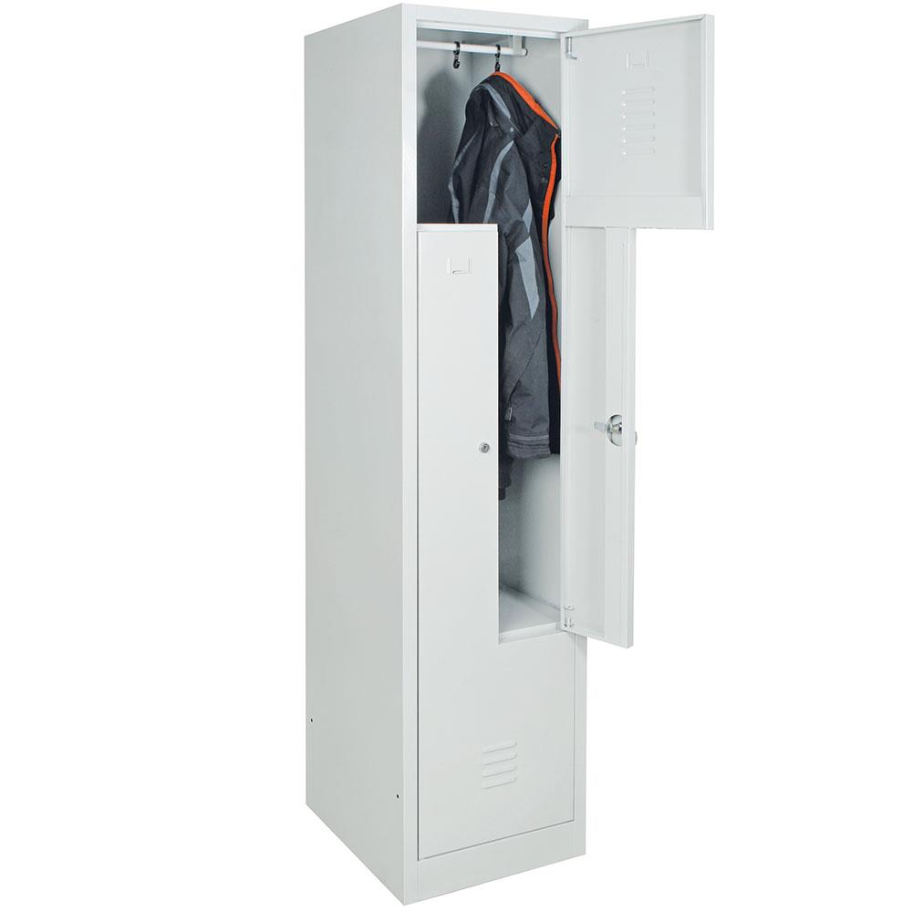 Z-Spind mit Sockel und Zylinderschlössern, 2 Abteile, BxTxH 415x500x1800 mm, lichtgrau