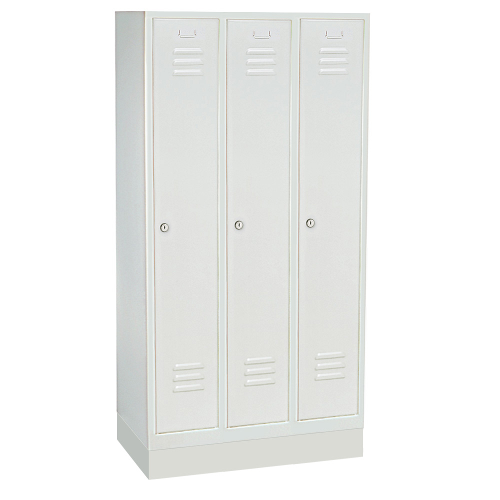 Kleiderspind mit Sockel und Zylinderschloss, 3 Abteile, BxTxH 900x500x1800 mm
