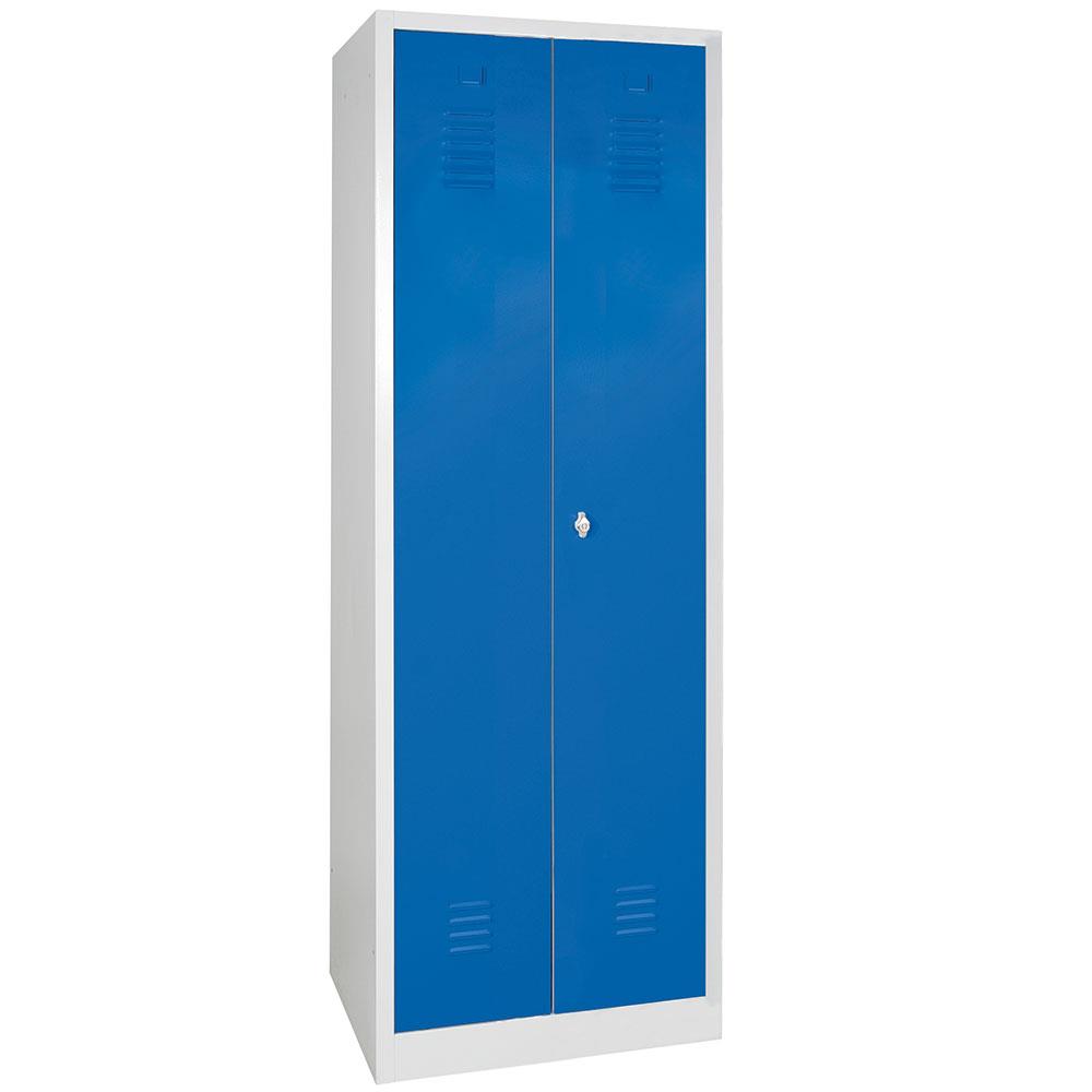 Putzmittelschrank mit Sockel, BxTxH 600x500x1800 mm, Korpus lichtgrau, Türen blau