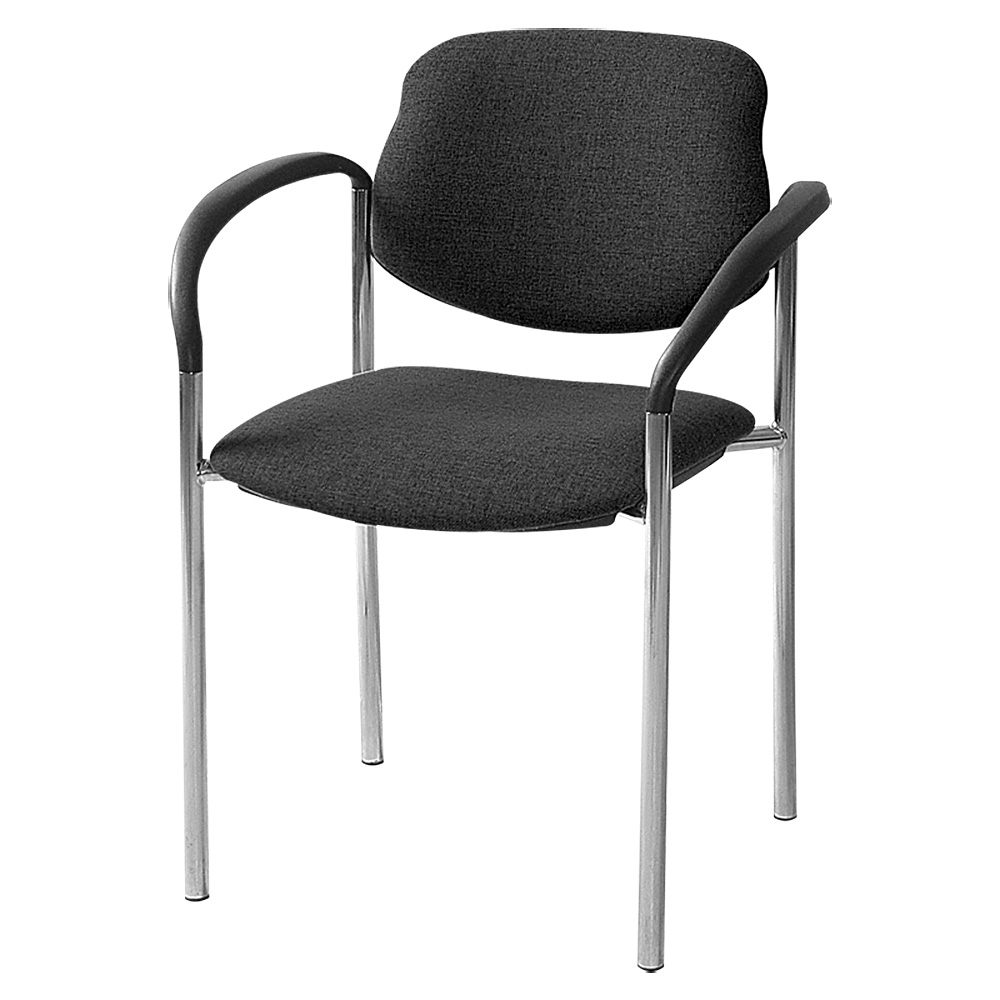 Besucherstuhl mit Armlehnen, Gestell verchromt, Polster schwarz, stapelbar, BxTxH 500x550x820 mm, max. Tragkraft 110 kg