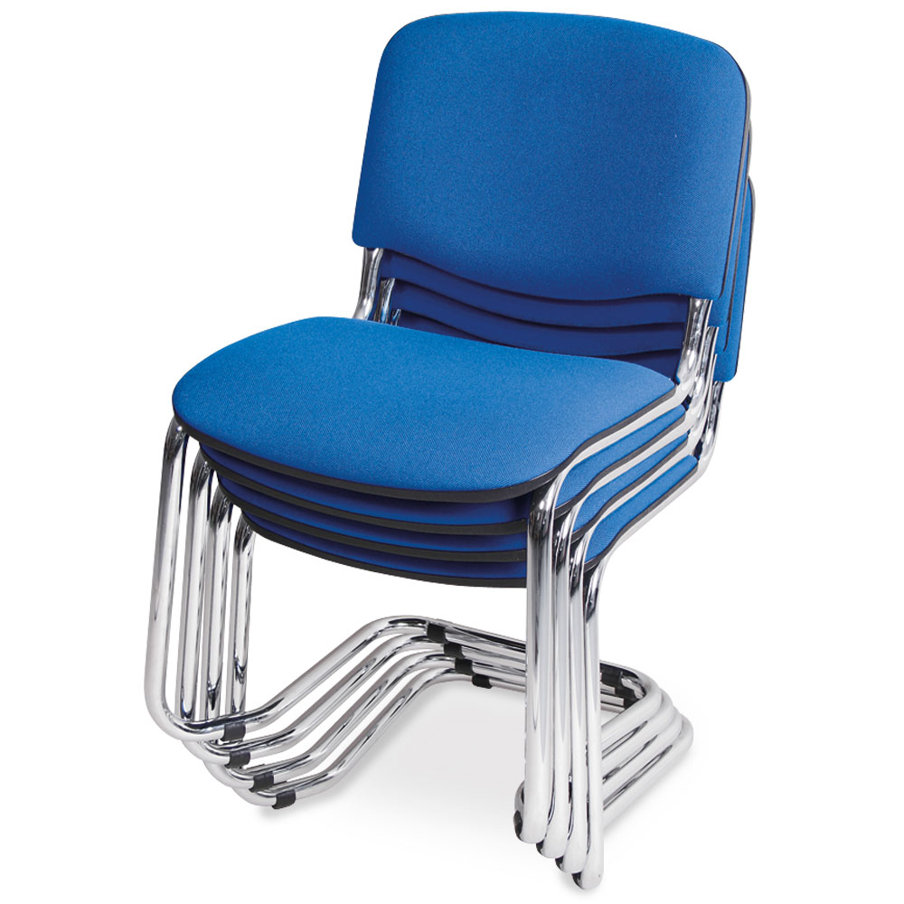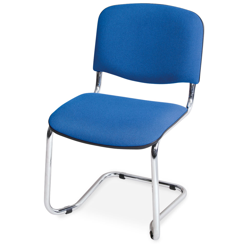 Schwingstuhl, Gestell hochglanzverchromt, Polster blau, stapelbar, belastbar bis 110 kg