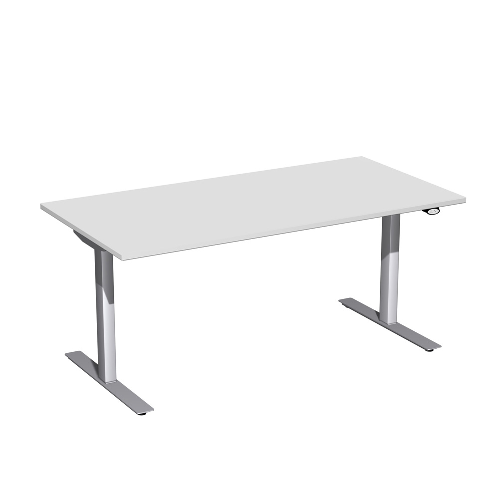 Steh- und Sitz-Arbeitsplatz "Elektro Flex", Dekor Lichtgrau, Gestell silber, BxTxH 1600x800x650-1250 mm