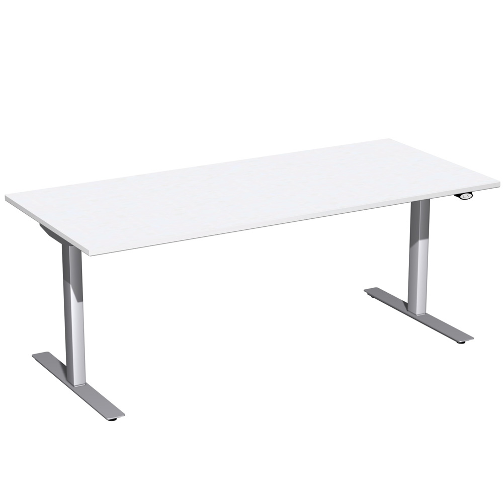 Steh- und Sitz-Arbeitsplatz "Elektro Flex", Dekor weiß, Gestell silber, BxTxH 1800x800x650-1250 mm