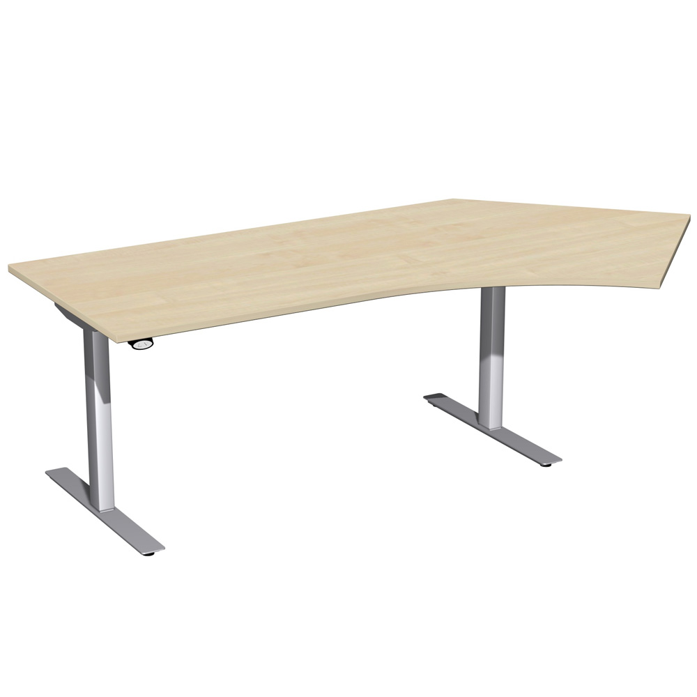 Steh- und Sitz-Arbeitsplatz, 135°, links "Basic", Dekor Ahorn, Gestell silber, BxTxH 2166x1130x650-1250 mm