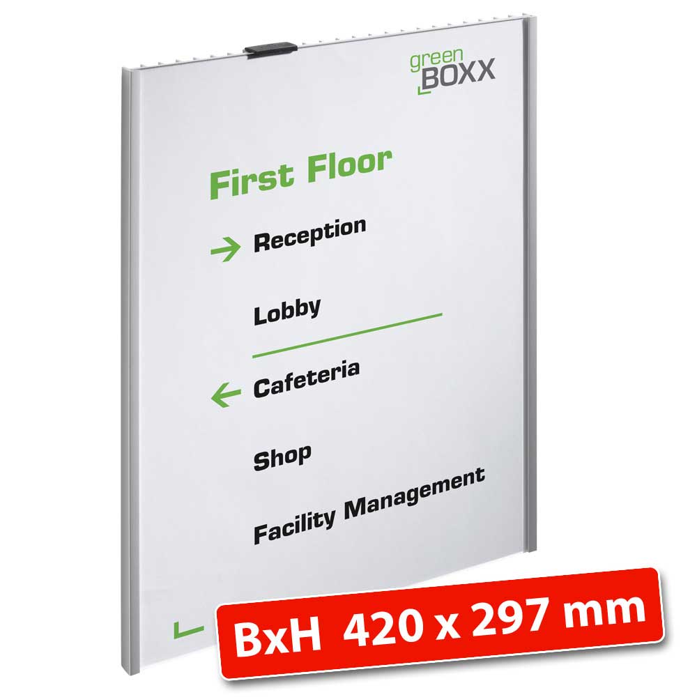 Türschild, BxH 301x424 mm, metallic-silber, Einsteckschild BxH 297x420 mm, DIN A3 hoch