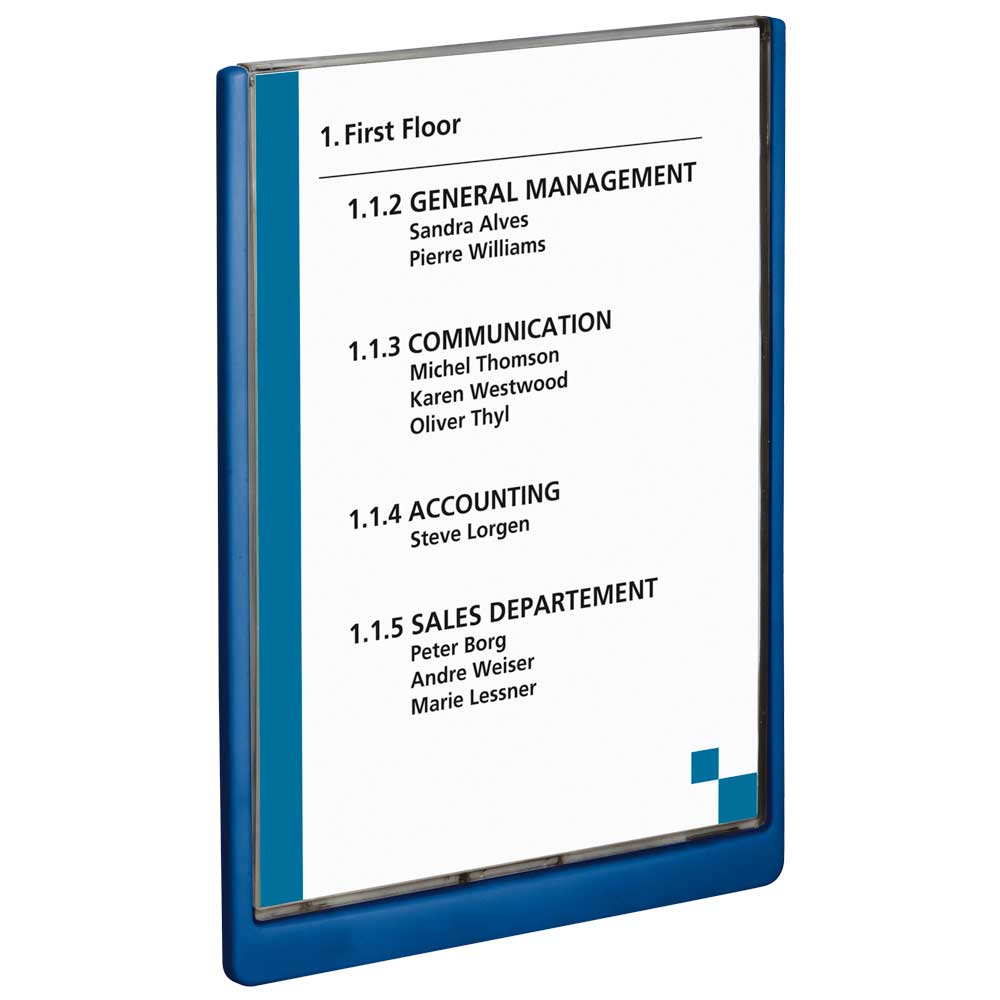 Türschild aus ABS-Kunststoff mit aufklappbarem Sichtfenster, BxH 210x297 mm, dunkelblau