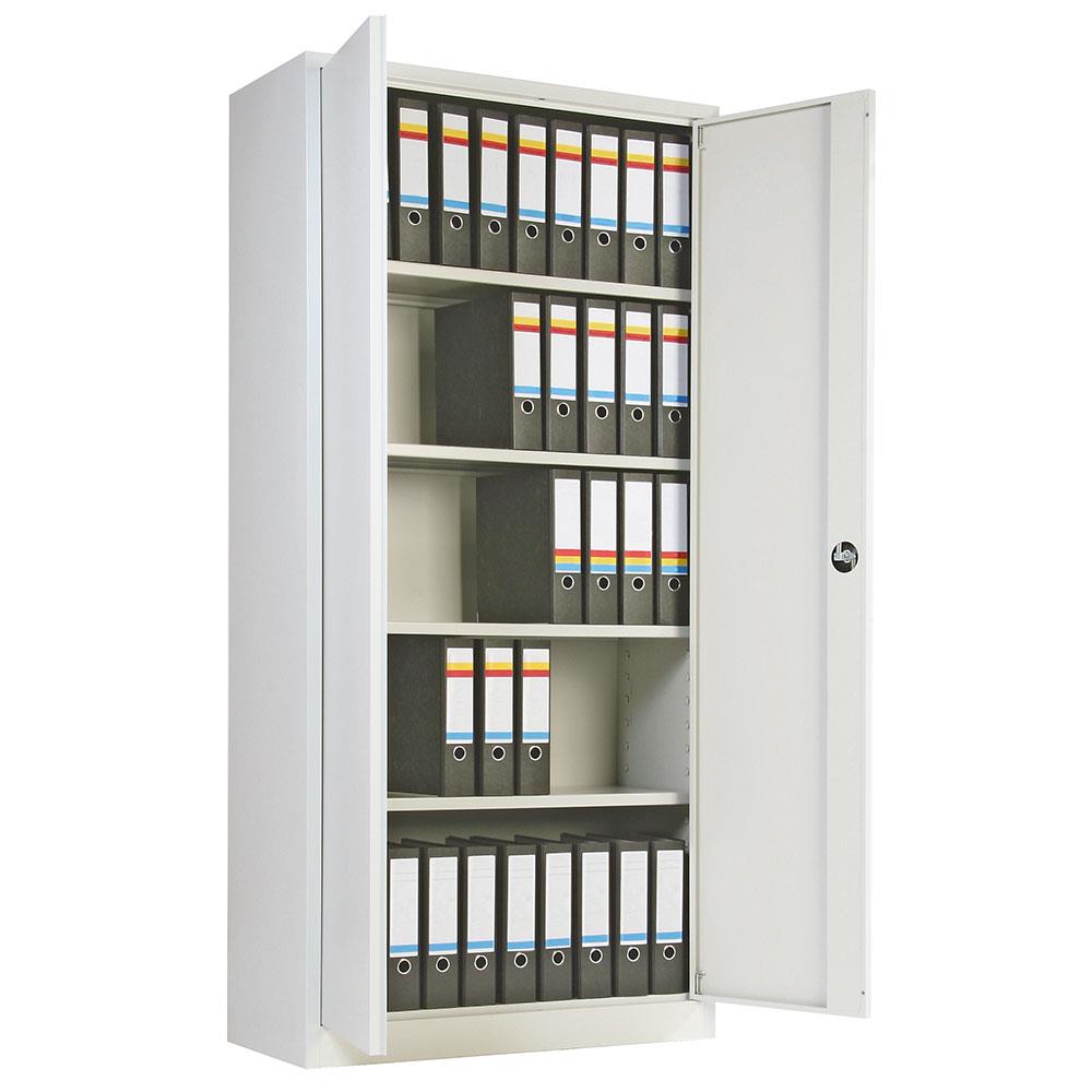 Ordner-Universalschrank mit 4 Fachböden, BxTxH 800x380x1800 mm, komplett lichtgrau RAL 7035