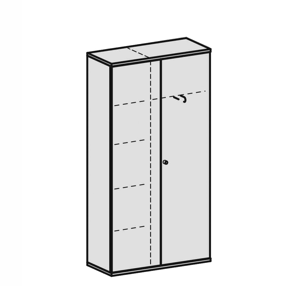 Garderobenschrank PRO, Nussbaum, BxTxH 1000x425x1920 mm, 5 Fachböden, 1 Kleiderstange
