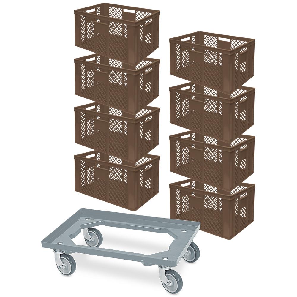 "Schwerlast-Roller + 8 Körbe 600x400x320 mm, Braun, Spar-Set"