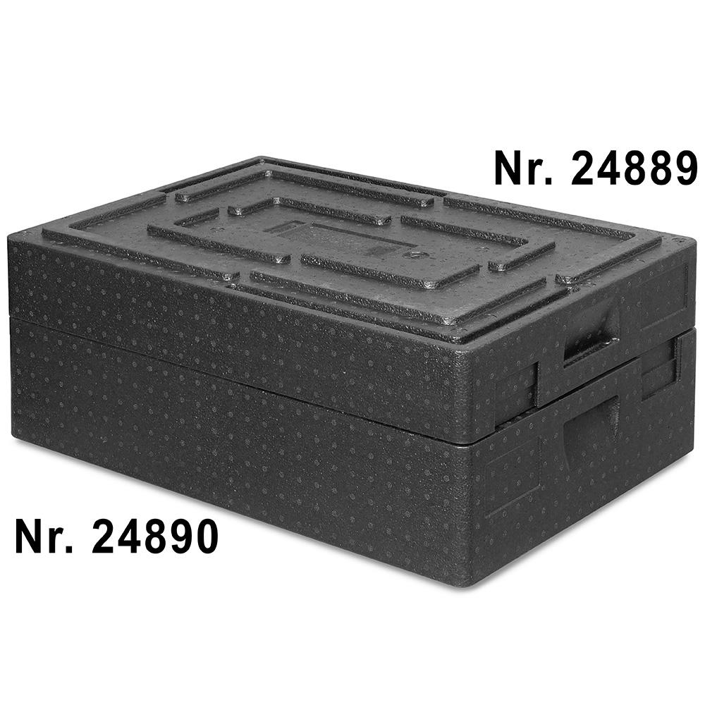 Die Thermoboxen sind flexibel in der Höhe, es kommt nur darauf an, wie Sie die Boxen aufeinanderstapeln. Beim Stapeln in gleicher Richtung beträgt die nutzbare Innenhöhe jeweils 120 mm, bei umgedrehtem Aufsetzen schaffen wir 2x 120 mm = 240 mm. Auch kombinierbar mit der niedrigeren Variante Art. 24889 mit einer Innenhöhe von 80 mm.