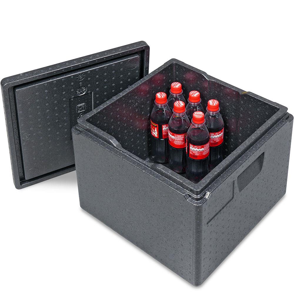Die stabile Pizza- und Torten-Thermobox / Isobox aus robustem EPP nimmt z. B. Pizza- und Tortenschachteln bis 350x350 mm auf. Die Thermobox ist geeignet zum Transport von warmen und kalten Speisen und wird mit einem dicht sowie festsitzendem Deckel geliefert.